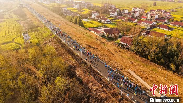 春日的南县罗文村,金黄的油菜花海与湛蓝的天空交相辉映,3500名跑者身着专属蓝色参赛服,如一条“流动的洞庭湖”蜿蜒于花田之间。3月16日,2025湖南南县罗文花海半程马拉松在洞...